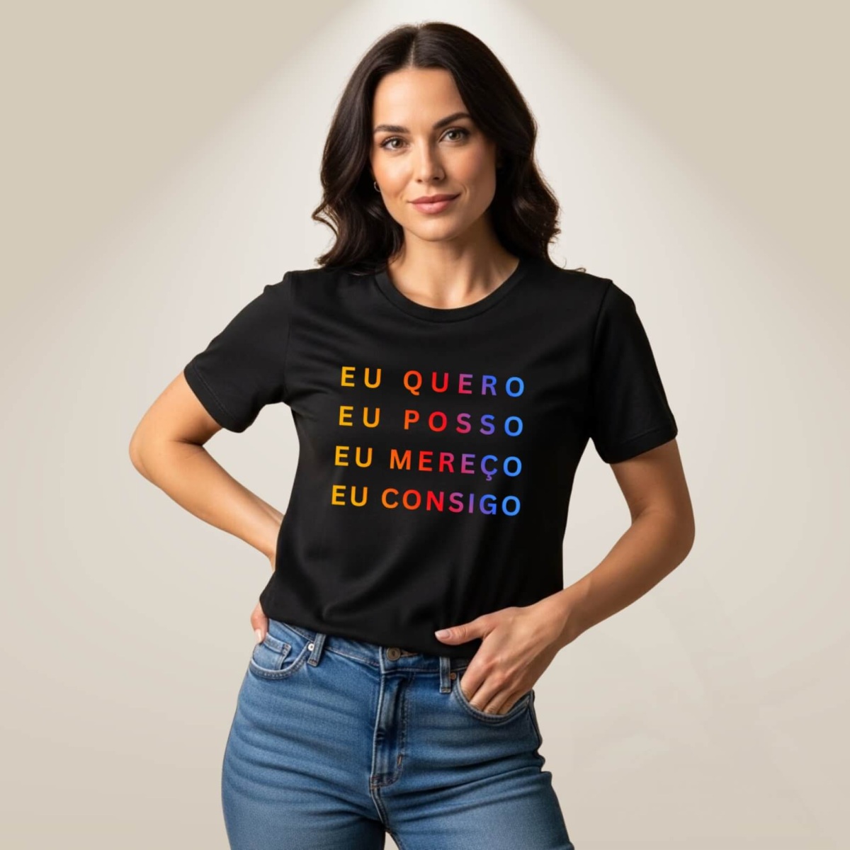 A Camiseta Eu Quero Eu Posso é mais do que uma peça de roupa, é uma declaração de força, confiança e autoconfiança.