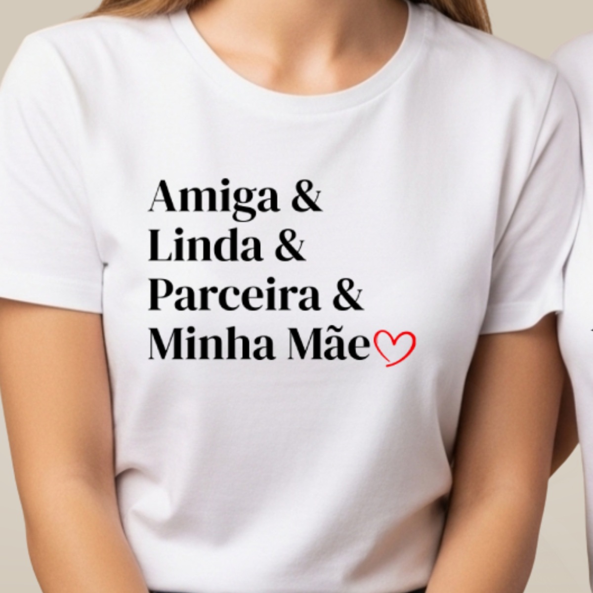 A Camiseta Minha Mãe é uma peça pensada para ser usada pelas filhas que desejam expressar, de forma leve e estilosa, o amor e a conexão com suas mães.