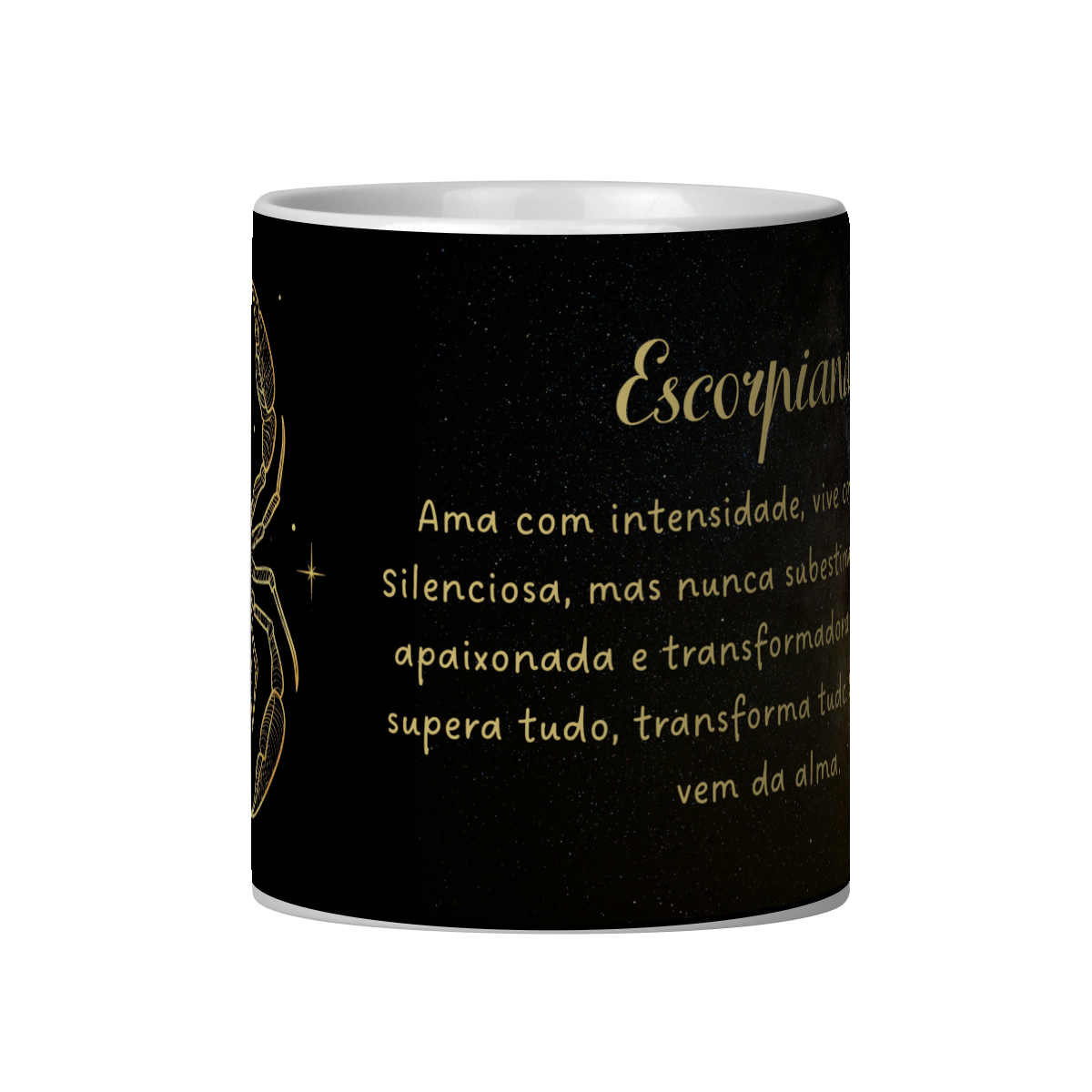 Com estampa exclusiva e visual marcante, a caneca escorpiana é ideal para quem se conecta com o universo do zodíaco e gosta de produtos com significado.